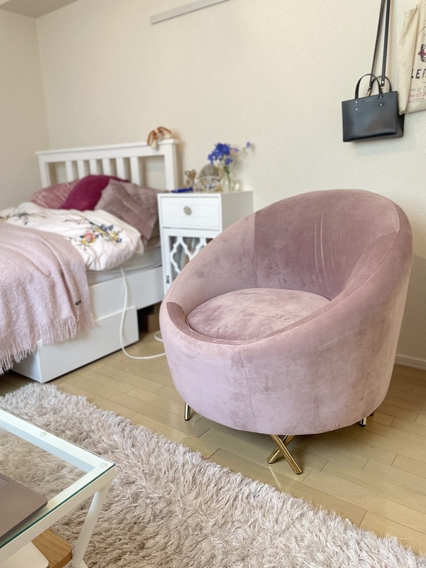 海外インテリアは、日本よりも大きいイメージですよね。アクセントチェアは、日本の家具や家のサイズ感にもマッチしやすいサイズ感でという印象です◎