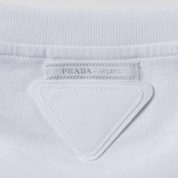 今勢いに乗っているプラダ。後見頃のネック部分にはお馴染みのトライアングルロゴが付いたパックTシャツが展開されています。ハイブランドらしい上質な質感のTシャツはジャケットのインナー使いとしても重宝しそうです◎