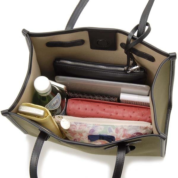 ブランドのアイコンともいえる、定番人気のトートバッグ。S・Mの2種類の大きさで、使用シーンに合わせて選べるサイズ展開が嬉しいポイント。ミニポーチが付いているので、鍵やリップなどの小物もしっかり収納できます。ガバッと開く開口部と広めのマチを備えた優秀バッグです。