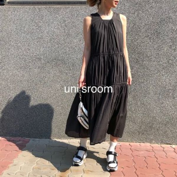 ▼1つ目のおすすめは、モダンで大人カワイイが叶うティアードワンピース。見た目も涼しく快適な着心地で、デイリー使いにぴったり。