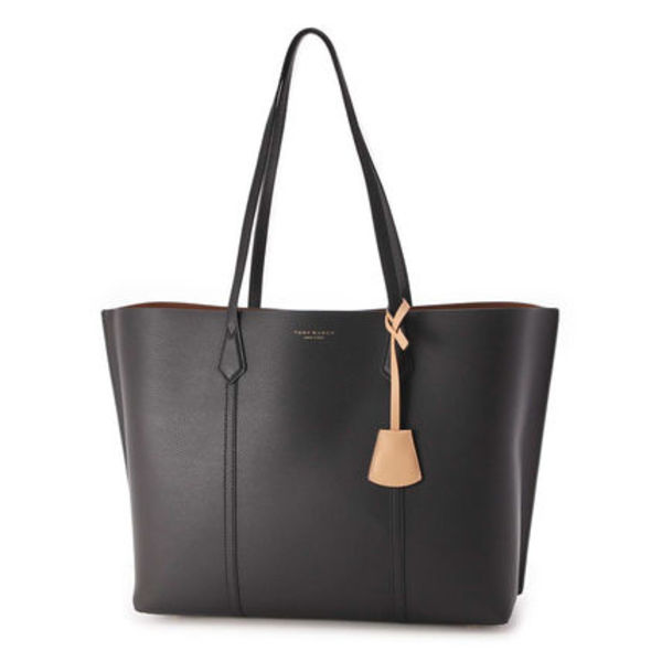 ▲適度なコンサバ感が、働く女性のコーディネートと好相性の『トリーバーチ』のレザートートは、控えめなブランドロゴがデザインのポイント♪ 退屈になりがちなトートバッグに、知的で洗練された印象をもたらしてくれます。