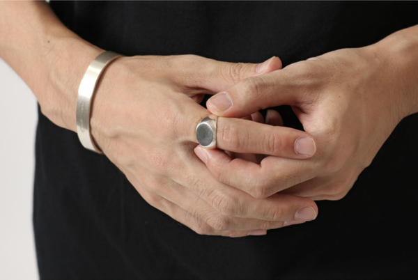 1つ目のピックアップアイテム同様、滑らかな曲線も特徴的。メンズのリングとしてはあまり見かけないソフトさですが、その感じがかえってオシャレ。