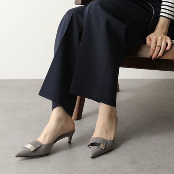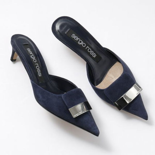 セルジオロッシの名品「sr1」が夏も快適なミュール仕様に。シャープなシルエットが大人っぽい印象で、低めのヒールなので歩きやすく疲れにくい。