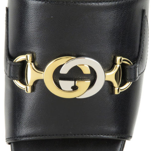 インターロッキングGとホースビットの金具をあしらった、スタイリッシュな一足。すっきりと無駄の無いフォルムで、ミュールながらきちんと感もプラス。