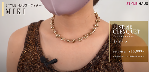 夏なのでTシャツとかに合わせてポイントになるような大ぶりのアクセを探していて出会ったJustine Clenquet(ジュスティーヌクランケ)のネックレス。アトリエでひとつひとつ手作りされているところにも魅力を感じました。
