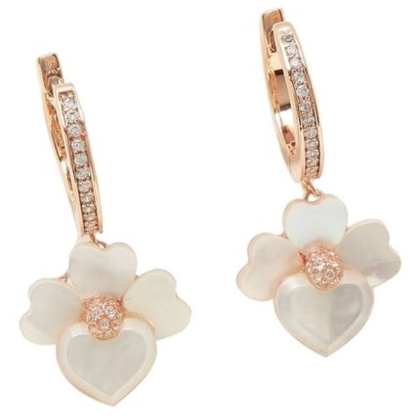シェルのような品のある輝きのフラワーピアス。ストーンが、歩くたびにキラキラとさりげないかがやきがとにかく可愛い。これが1万円以下とは驚きですよね。