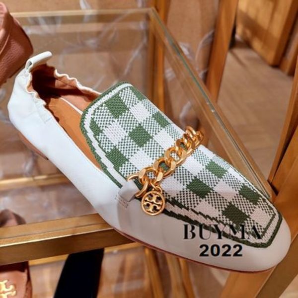 Tory Burch(トリーバーチ)からは、ホワイト×グリーンの優しい色合いのローファーをピック✓チェックとゴールドメタルがチェーミングな一足です。