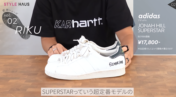 adidasの定番モデルSUPERSTARをベースに、アメリカの俳優&映画監督などを手がけるJONAH HILL(ジョナヒル)とのコラボで作成されたモデル。