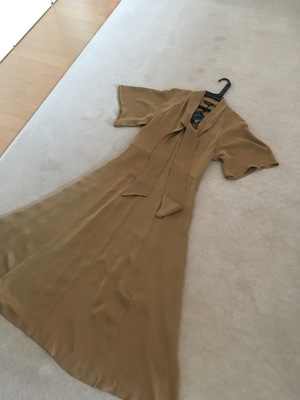 ボウタイつき Vネック ベルベット ワンピース