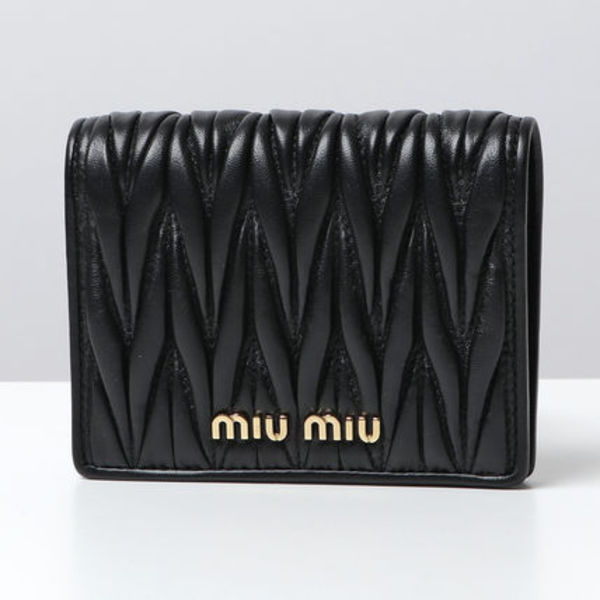 「MIUMIU(ミュウミュウ)」なら、ブラック財布でもかっこよくなりすぎず絶妙な甘さが漂います♡ガーリー派さんやフェミニン派さんは必見ですよ!