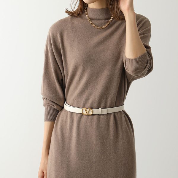 スカートやワンピーススタイルにVALENTINO(ヴァレンティノ)のベルトを投入するだけで、ラグジュアリーな装いにアップデート。ニットワンピースに合わせれば一気にフェミニンムードが高まります。