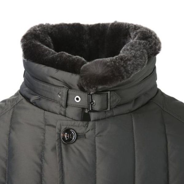 ▼首元は取り外し可能なラビットファーがレイアウトされ、ミニベルトで締めれば寒い冬も文句なしの暖かさに。色味もシックで男らしい雰囲気が漂っています!