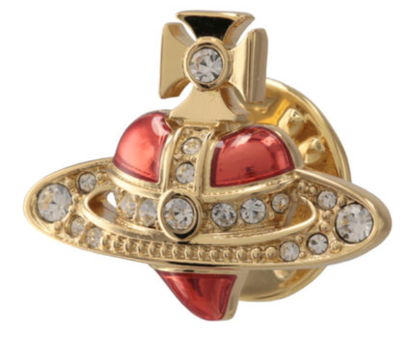 愛らしいハートモチーフを、Vivienne Westwood(ヴィヴィアンウエストウッド)の代名詞である“ORB”に見立てたフェミニンデザインが目を惹くピンバッジ。