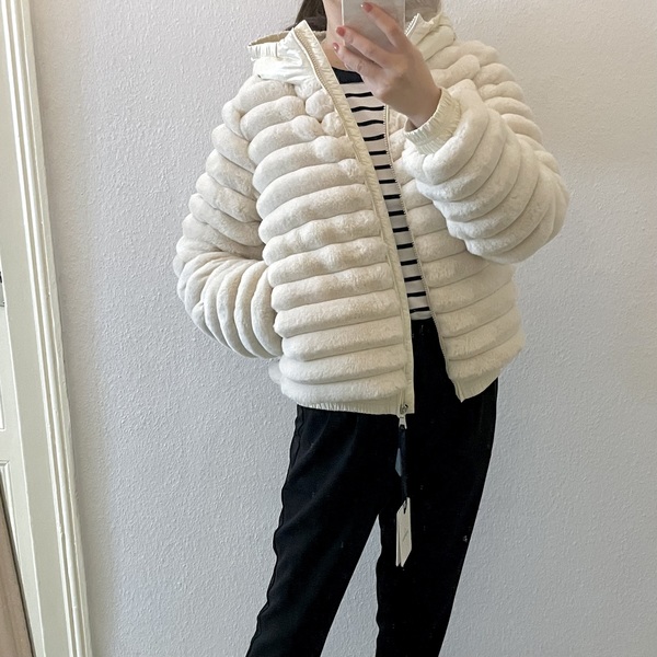 ボアコートが苦手な人でも着やすい「kate spade new york(ケイトスペード)」のフリースジャケット♡キルティングとボア素材の切り替えがスタイリッシュで、着太りを感じさせません。
