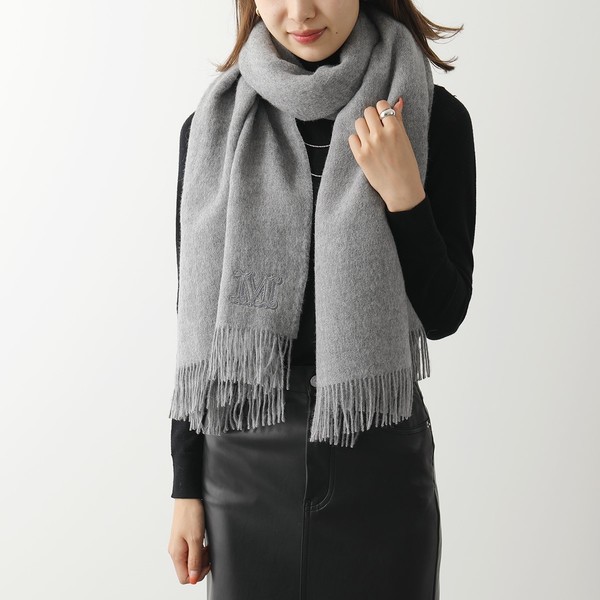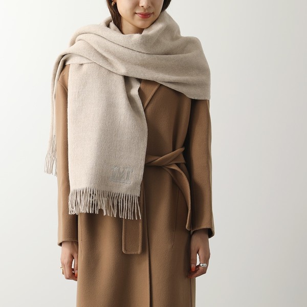 アイコニックなアナグラムが刺繍されたバイカラーのマフラーは、キレイめで大人女性にぴったり。カシミヤとウールがブレンドされ、暖かさもばっちり。1枚あるとひざ掛けにもできるので、職場でも使える♡