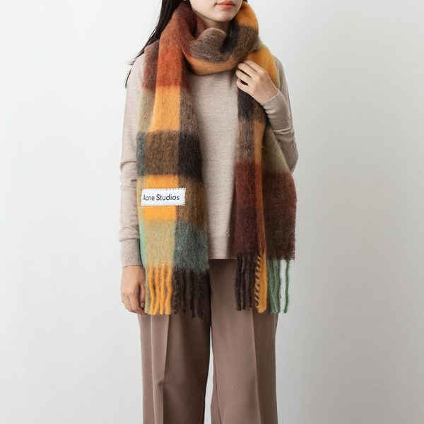 大きめサイズが好きというあなたには、Acne Studios(アクネストゥディオス)の大判ウールストールがおすすめ。オーバーサイズでボリューミーなデザインなので、首に巻いて使うのはもちろん、室内ではショールのように肩からかけて使ったりと、アレンジ次第で幾通りにも使えます。