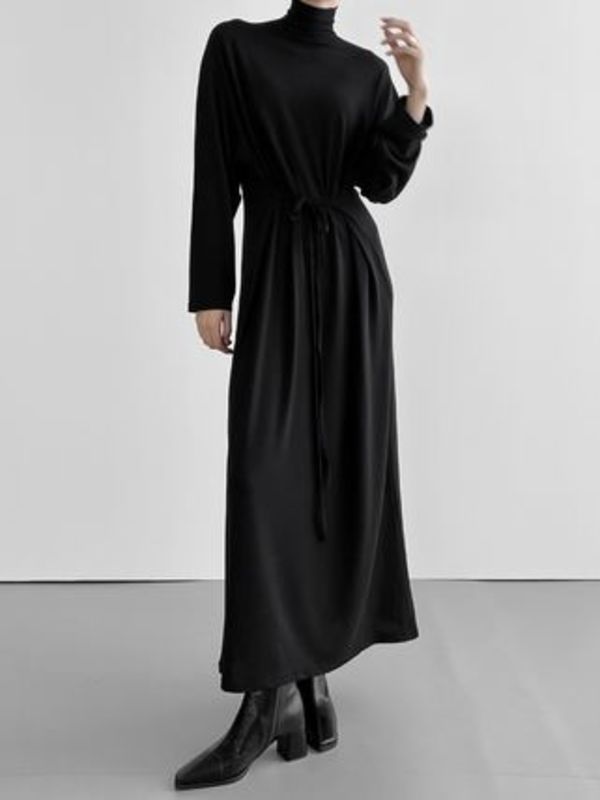 韓国ブランド「mnem(ムネム)」のシンプルなタートルネックワンピース♡旬の透け感素材が全身に抜け感をプラスしてくれます。