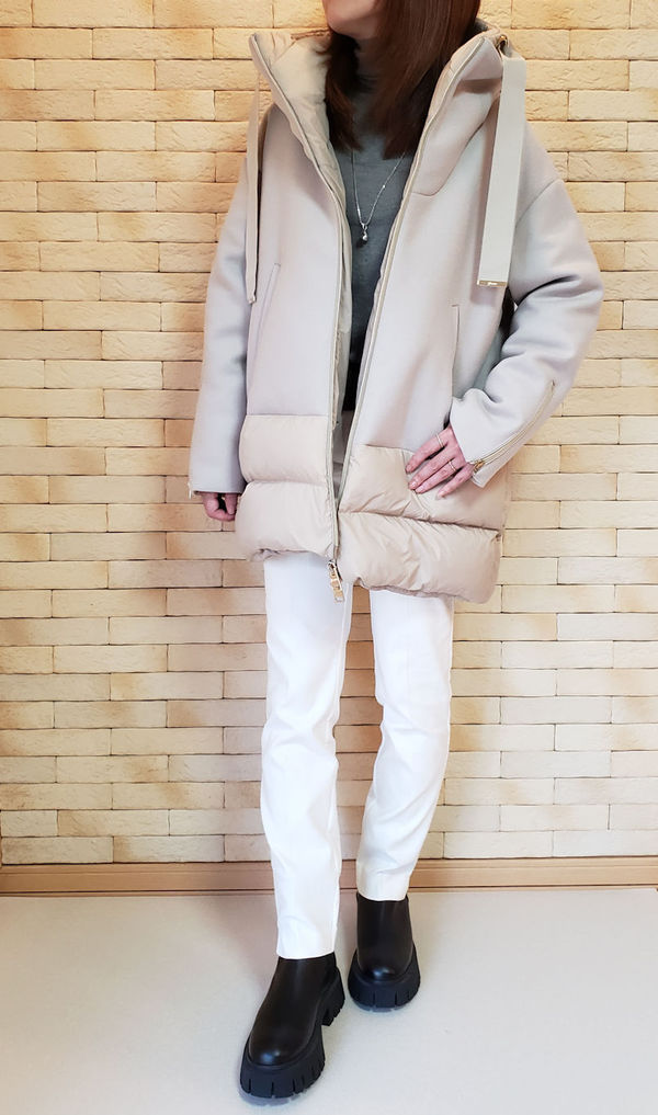 タイトなシルエットが特徴。ダウンは膨張して見えやすいため、スタイルアップを叶えてくれるのが嬉しい♡