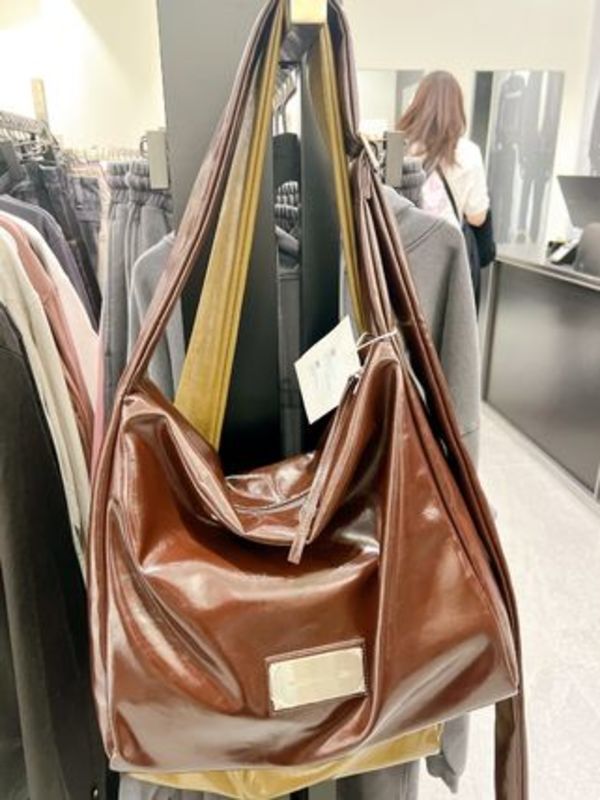 こちらはファッション愛好家たちの間で注目度が急上昇している、2024年最新作のフェイクレザーバッグ。正面にあしらわれた2本のベルトデザインが特徴的で、洗練された艶めきと横長のフォルムがコーデを格上げしてくれます。