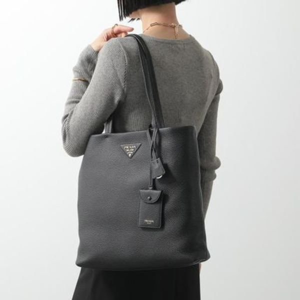 「PRADA(プラダ)」のレザートートバッグは、洗練されたデザインがスタイリッシュ♪エンボス加工で施されたブランドロゴがさりげなく、シンプルなバッグにモード感をプラスしています。
