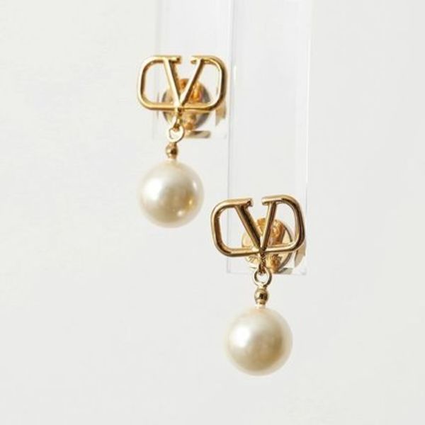 メタルのVロゴに小ぶりのパールが揺れ動くピアス。フォーマルにもカジュアルにも使いやすいデザインが乙。