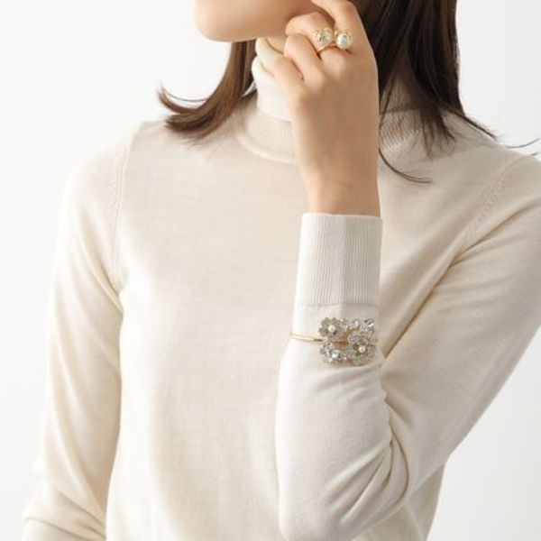 パリに本店をかまえるラグジュアリーメゾンから、ブーケストラスバックルのバングルをピックアップ。クリスタルとパールが組み合わさり女性らしく華やかに輝きます。