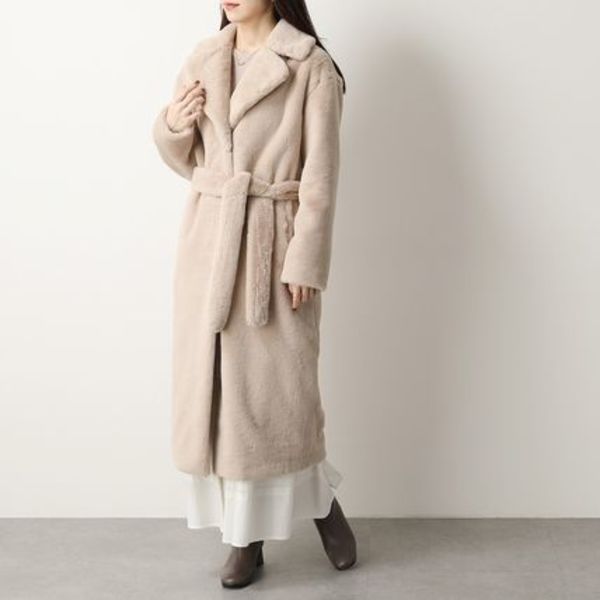 本命コートとして比較的手に取りやすい価格帯で、エレガントなファーコートが揃う「HERNO(ヘルノ)」♡ロング丈のテーラード型だからきちんと感があり、大人レディに着こなせます。付属のベルトでウエストマークしてメリハリをつけて♪