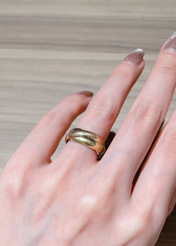 彫刻的でいながらシンプルな美しさに惚れこんだトリニティ。店員さんにSMサイズを薦められつつ、年齢を重ねた未来の手に思いを馳せMMをチョイス。これがぴったり似合うご婦人になりたい。私の人生の指標になるリングです。(STYLE HAUSスタッフ/20代後半)