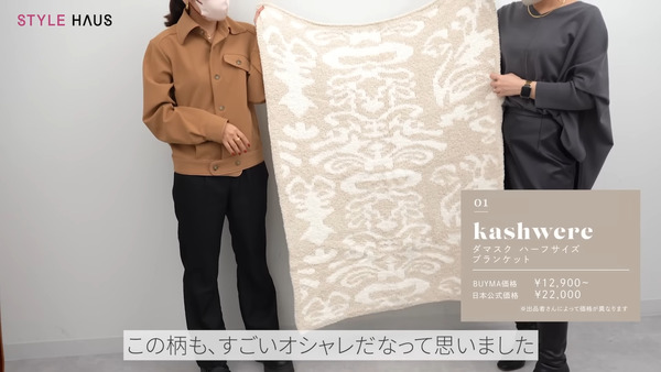 定番アイテムとして2022年も人気が高かった、「カシウエア」のブランケット。ポリエステル100%というと少しチープな印象ですが、乾きやすく、吸湿性に優れています。ダマスク柄がおしゃれなアイテム。
