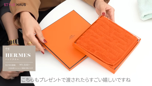 鮮やかな色合いがそろう「エルメス」のハンドタオル。こちらも大きめのサイズ感になっており、使いやすそう。「エルメス」らしいエレガントなデザインで、持っているだけで気分が上がる逸品。プレゼントにぴったりなアイテムです。