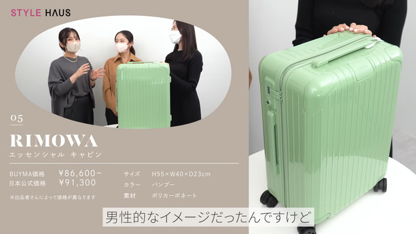 旅行がしやすくなってきた今、人気が高まっている「リモワ」のキャリーケース。こちらは“エッセンシャルシリーズ”のもので、女性にも使いやすいカラフルな色展開が魅力です。ホイールの動きもスムーズで、全方向にスイスイ動きます。軽量なのもうれしいポイント。