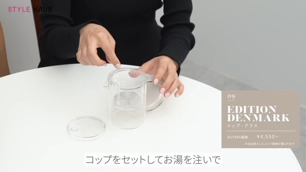 韓国ブランド「エディションデンマーク」からは、耐熱ガラスのコップをピックアップ。シンプルながらも革新的なデザインが特長。紅茶好きの人におすすめしたいアイテム。