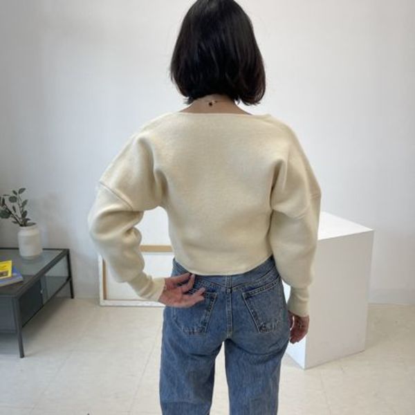 女性らしいデコルテを美しく見せるカットがほどこしてあり、緩いVネックのカーブが叶えてくれるのは、上品な肌見せ。冬のデートコーデにも大活躍しそうなオトナっぽさはまさに「買い」ですよね♡