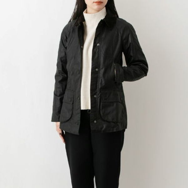 先ほど紹介した、シンプルでクラシカルな定番シリーズ「BEDALE(ビデイル)」をベースとしたオイルドコットンジャケット「BEADNELL(ビアドネル)」。防水性・耐久性はもちろん、裏地はチェック柄で折り返した袖口や袖元からチラリと見えてアクセントに。ウエストが細身に作られているので、女性らしいシルエットに見せてくれます◎。