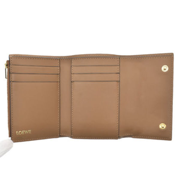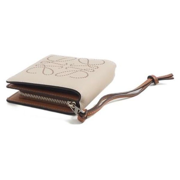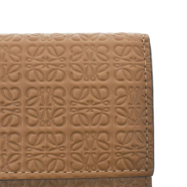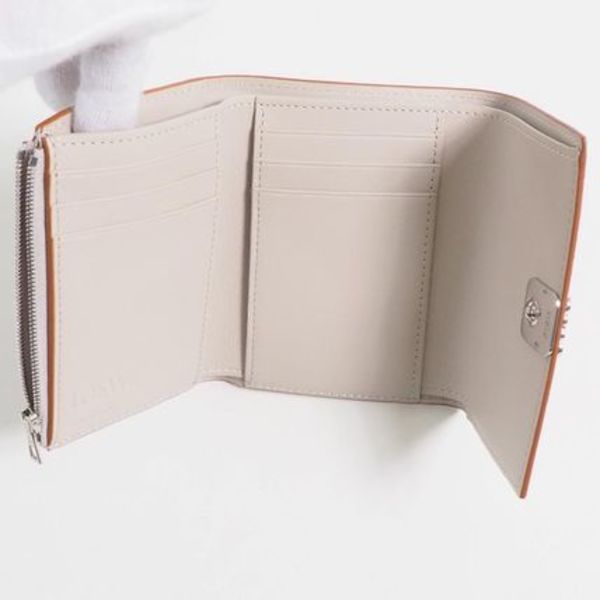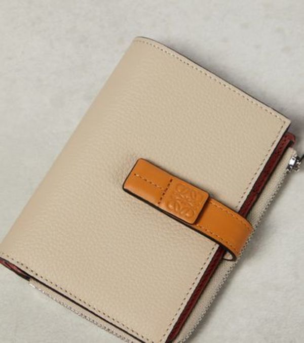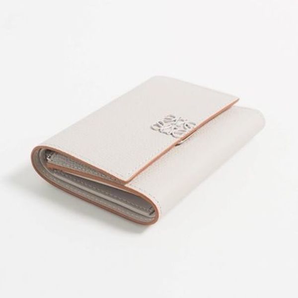 カーフスキン製の「三つ折り財布」でアナグラムロゴがキャッチー。〝ロエベ〟らしいミニマルなデザインと絶妙なベージュも魅力。