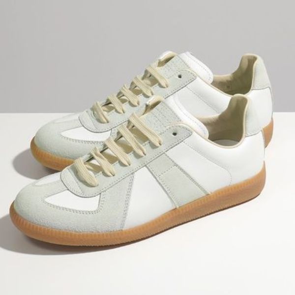 ▽ドイツ軍のトレーニングシューズ、「ジャーマントレーナー」からインスパイアされた「Replica(レプリカ)スニーカー」。レザー×スウェードが、レトロスポーティな表情を覗かせます。
