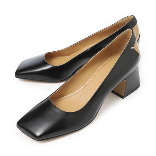 ▽スクエアトゥが最高にクールな一足は、自分を強く見せてくれること間違いなし♡一見、ベーシックに見えながらも、踵にマルジェラのディテールを落とし込んだデザインです。