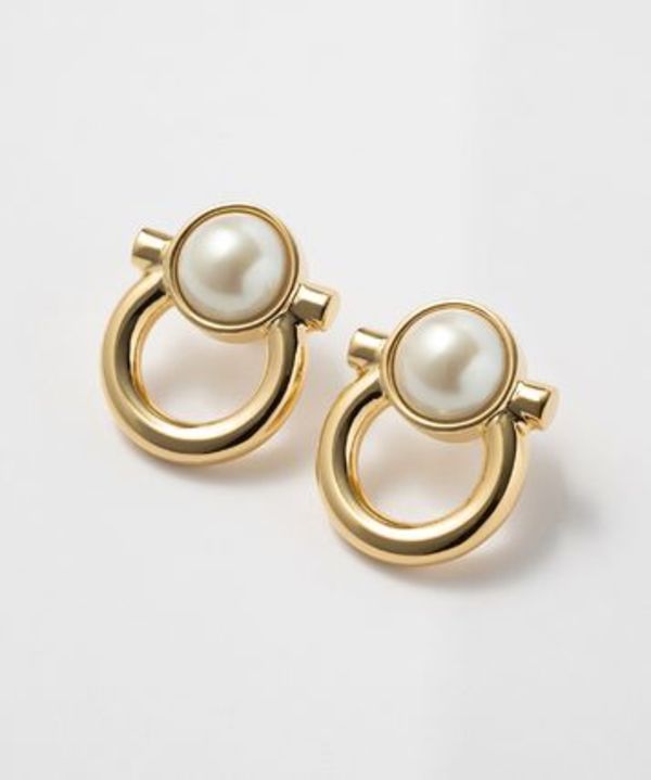 こちらも「FERRAGAMO(フェラガモ)」のアイコンモチーフ“ガンチーニ”をあしらった高級感たっぷりのピアス♡中心に大粒のパールがあしらわれた品のあるデザインで、正装時にも役立ちます。