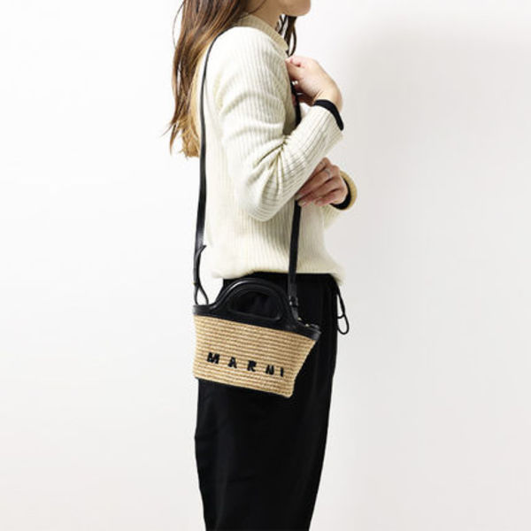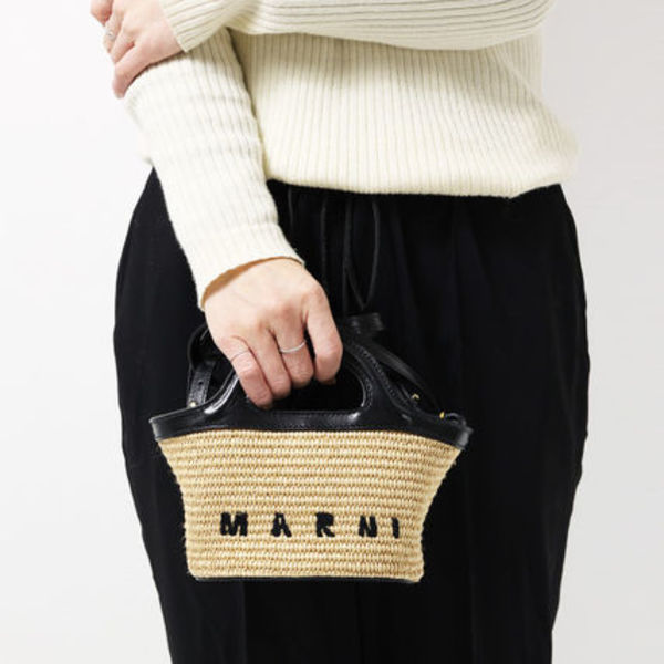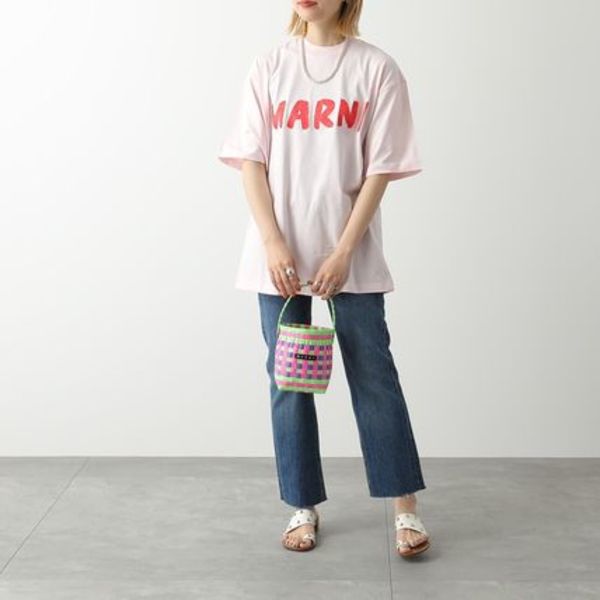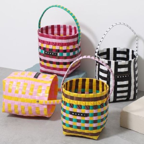 ハンドメイドで丁寧に編まれた、バケットバッグ。カラーもマルニらしいポップで洗練された組み合わせになっています。