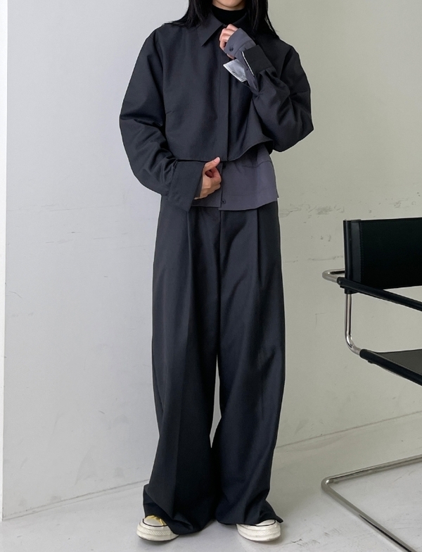 タック入りの「華奢見えするセットアップ」