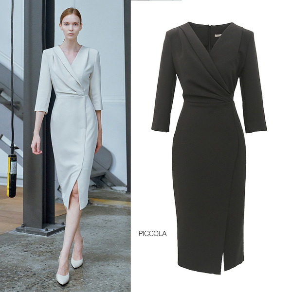フリルやリボンなどのキュートすぎるモチーフは苦手なので、シンプルさをベースにするのがポイント。バイカラーやモノトーンはスタイリッシュでかっこいい印象になるので得意です。腰周りからぽわんと広がるシルエットは苦手傾向なのでなるべくすっきりとした、膨らみを抑えたシルエットのワンピースがおすすめです。