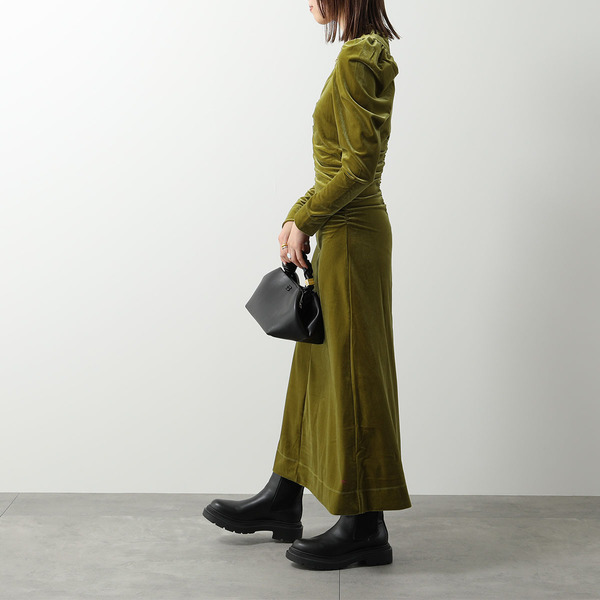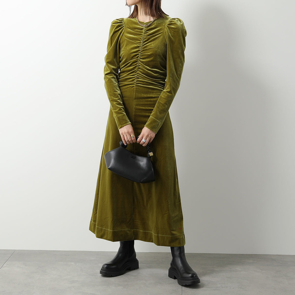 ▼パフスリーブが女性らしいGanni(ガニー)のベルベットジャージ ロングドレス。大人の女性らしいにエレガントさを残したワンマイルコーデに仕上がります。