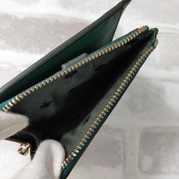 ▼サイズは縦9㎝横14㎝と少し横長に仕上げられた二つ折りのお財布は、カードが10枚収納出来きます。
