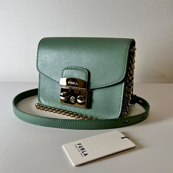 『フルラ』のアイコン「メトロポリス」は、フロントにあしらわれたクロージャーがアクセントとなったスタイリッシュなイメージのライン。なかでもゴールドのチェーンが印象的なショルダーバッグは、お出かけコーデを洗練された印象にしてくれるロングセラーアイテムです。