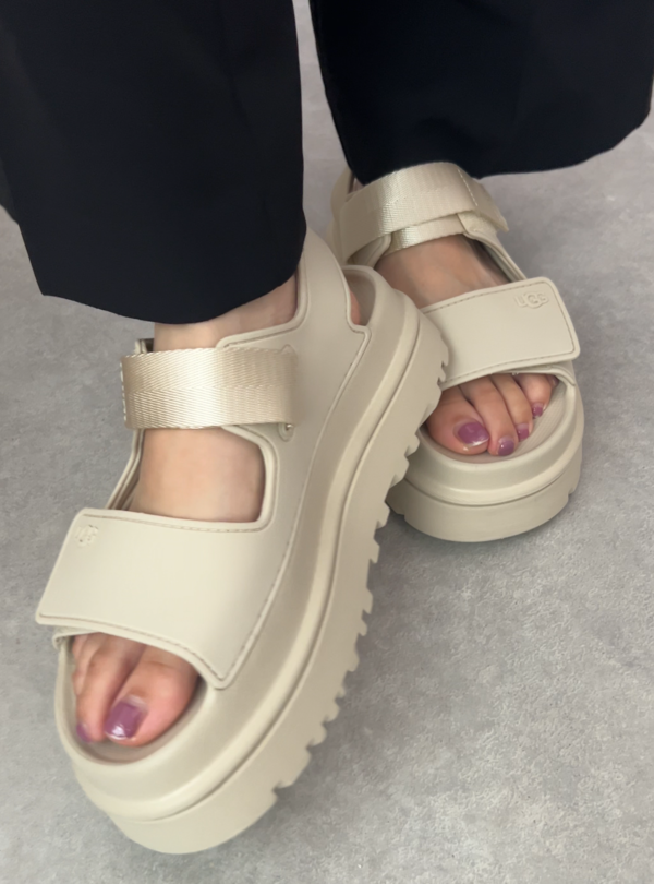 シープスキンブーツやスニーカーなど秋冬に大活躍するシューズが多い「UGG(アグ)」。実はおしゃれさんの間でサンダルも使いやすいと大人気なんです!シンプルなスポサンは、程よい厚底で使いやすくどんなファッションにも合わせることができます。