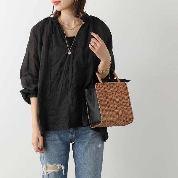 ブラッグのレザーとのコンビが大人な印象のかごバッグ。綺麗めなスタイリングのアクセントや外しアイテムとしておすすめです。