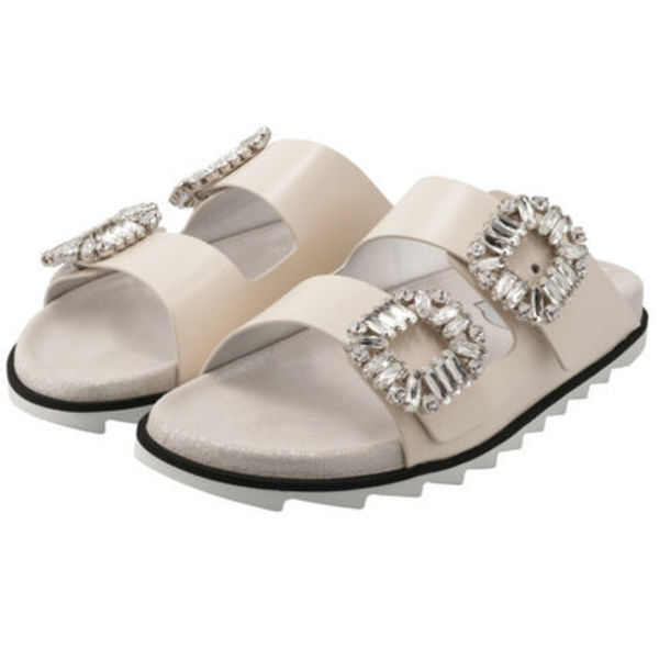 こちらは「SLIDY VIV'(スライディー ヴィヴ)」という、華やかなクリスタルバックルが輝くサンダル。ホワイトなら、スポーティーなサンダルもクリーン&エレガントな印象に履きこなせそうだから、厚底初心者にもオススメです。