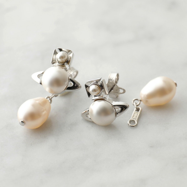 無垢な印象や清潔感、エレガントなムードを出すのが得意なパールのピアス。揺れるパールは取り外すこともでき、気分やスタイルに合わせて変えてみるのも◎