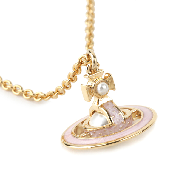 ブランドを象徴するオーブをモチーフに、淡い色のエナメルカラーとパールで装飾したエレガントなデザインのネックレス。小さめで上品な仕上がりなので普段使いしやすいデザインです。
