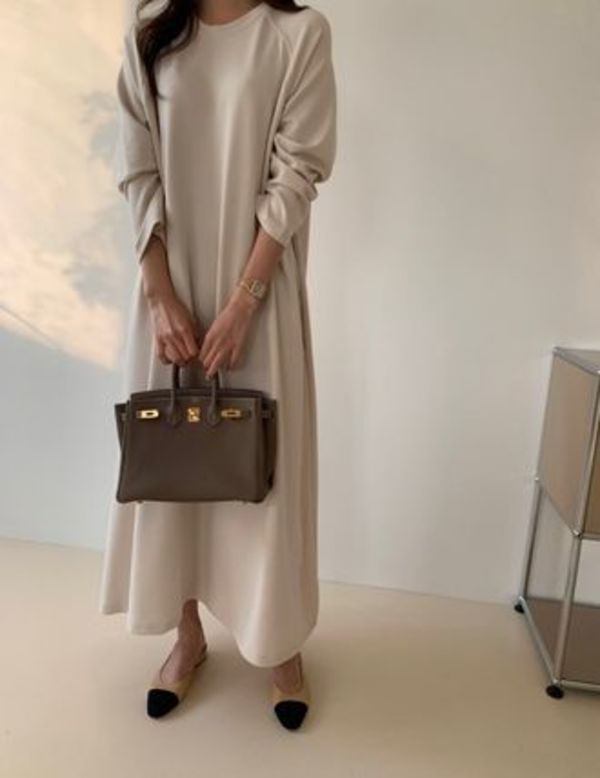 スウェット素材のワンピースは、リラクシングな見た目と着心地でお出かけにもお家時間にも使える優秀アイテム。バッグを持ったりアクセサリーをつけたりすることで、お迎えや買い出しもできる上品な着こなしに。